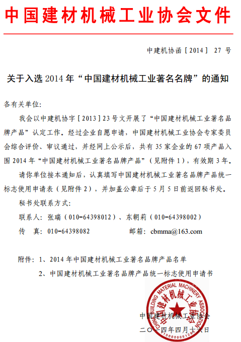 江蘇鵬飛集團榮獲中國建材機械工業(yè)著名商標(biāo)