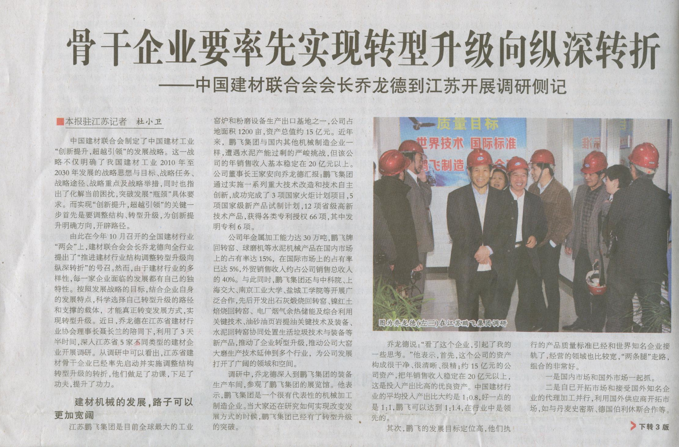 骨干企業(yè)要率先實(shí)現(xiàn)轉(zhuǎn)型升級(jí)向縱深轉(zhuǎn)折——中國(guó)建材聯(lián)合會(huì)會(huì)長(zhǎng)喬龍德到江蘇開展調(diào)研側(cè)記