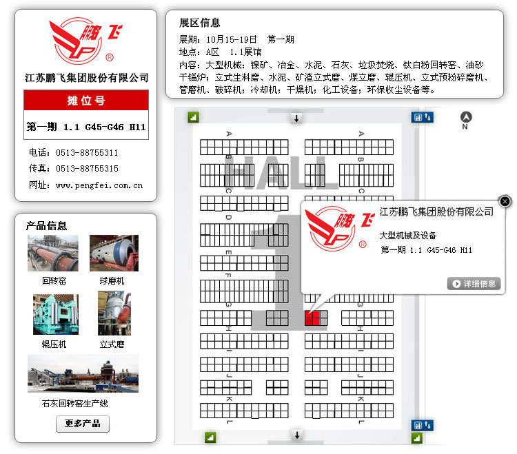 江蘇鵬飛集團(tuán)在廣交會(huì)上精心布置展位,印發(fā)各類設(shè)備的介紹手冊(cè),整體模型展示水泥生產(chǎn)線產(chǎn)品,委派具有多年工作經(jīng)驗(yàn)的銷售、技術(shù)、售后等專業(yè)工作人員為顧客詳細(xì)介紹新產(chǎn)品、新技術(shù),全面分析解答各類設(shè)備從購買到投產(chǎn)使用以及售后服務(wù)等每個(gè)環(huán)節(jié)的問題,為您排疑解難,與您達(dá)成共識(shí)。同時(shí),也希望能和更多的國(guó)內(nèi)外公司加強(qiáng)聯(lián)系,互相合作,為客戶提供更加完美的產(chǎn)品。