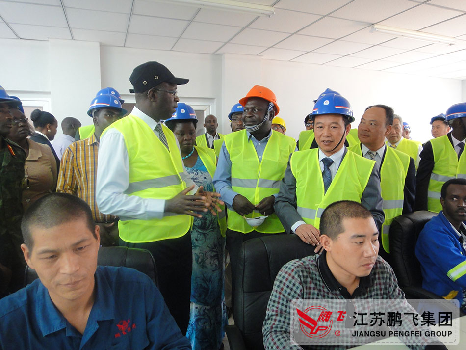 江蘇鵬飛集團(tuán)董事長(zhǎng)、總經(jīng)理王家安陪同盧旺達(dá)總理Mr ANASTASE MUREKEEI參觀工程現(xiàn)場(chǎng)