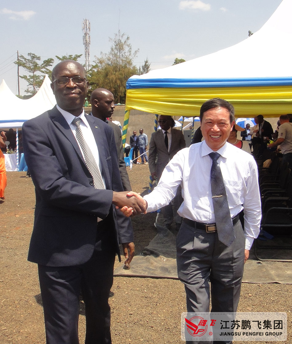 江蘇鵬飛集團(tuán)董事長(zhǎng)、總經(jīng)理王家安與中國(guó)駐盧旺達(dá)大使等領(lǐng)導(dǎo)合影