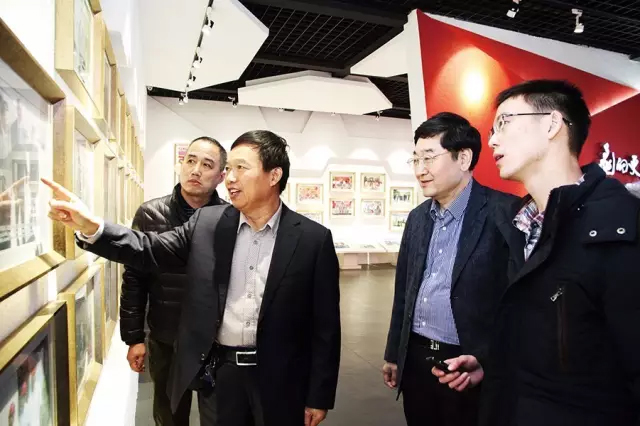 △王家安(左二)帶領(lǐng)本刊記者參觀展廳