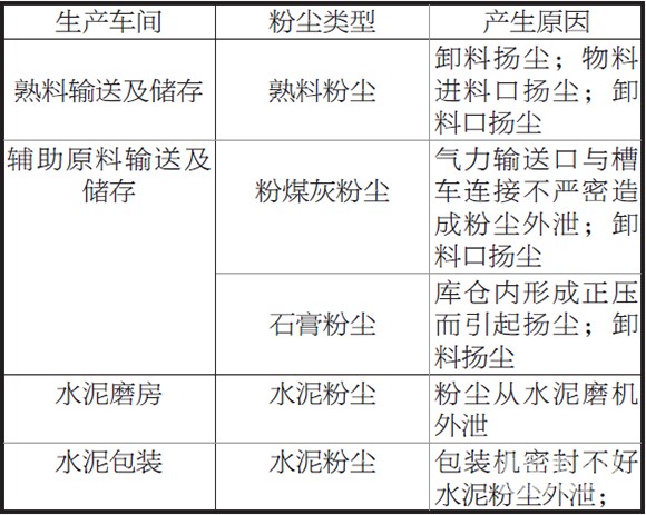 表1 水泥粉磨站粉塵污染來(lái)源統(tǒng)計(jì)表
