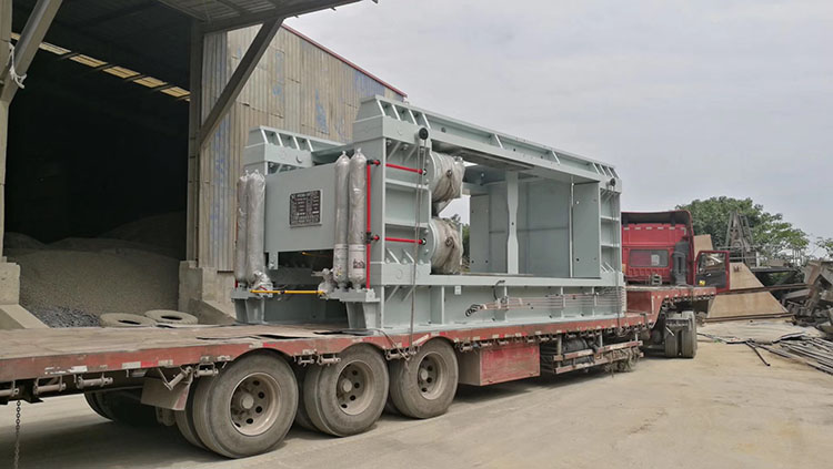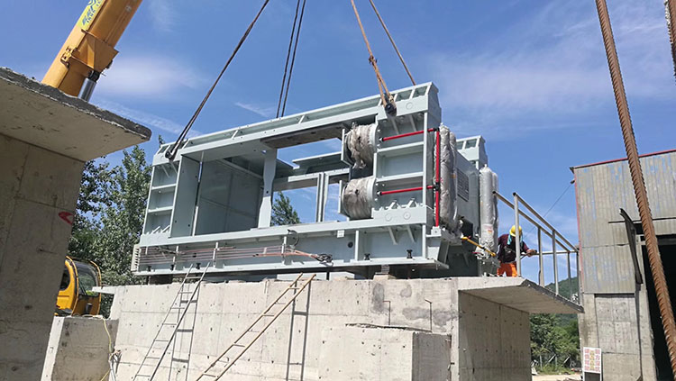 在項(xiàng)目施工現(xiàn)場(chǎng)鵬飛制造的PFG180-120輥壓機(jī)已進(jìn)入安裝階段。