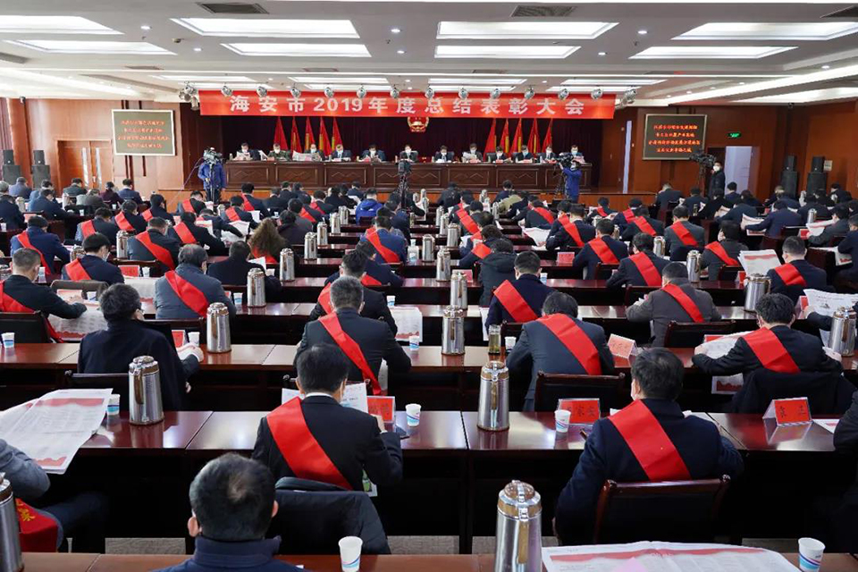 3月14日上午,海安市召開2019年度總結(jié)表彰大會,表彰全市各條戰(zhàn)線涌現(xiàn)的先進單位和個人,由于受新型冠狀肺炎疫情的影響,會議實施一人一桌簡便召開。會議設主會場和分會場,由海安融媒體中心進行現(xiàn)場直播。市四套班子全體負責人,各區(qū)鎮(zhèn)、各部門主要負責人、受表彰對象代表出席會議。獲獎單位分別上臺領獎,顧國標書記做了重要講話。鵬飛集團榮獲海安市委、市政府授予的杰出貢獻獎、工業(yè)百強企業(yè)、開放型經(jīng)濟先進企業(yè)、海安市市長質(zhì)量獎、王家安董事長當選六星級企業(yè)家。