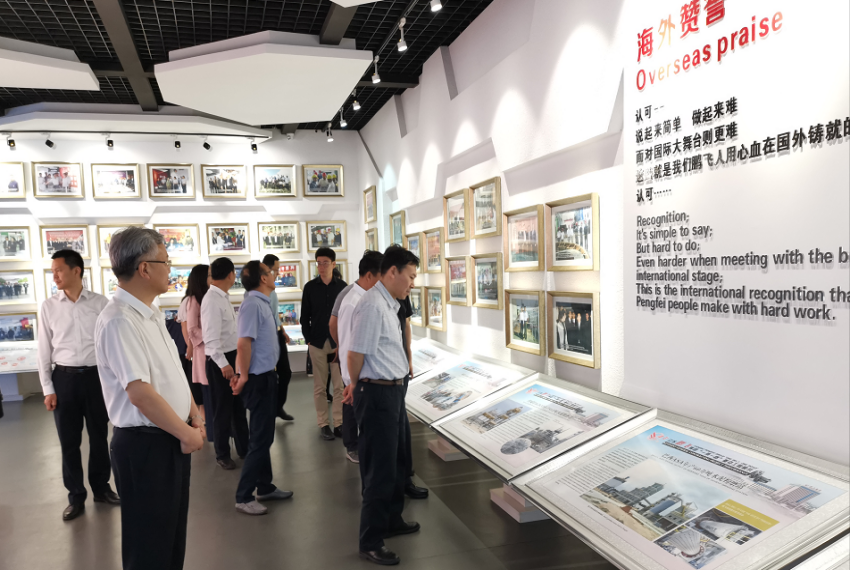 江蘇鵬飛集團(tuán)股份有限公司董事長王家安帶領(lǐng)調(diào)研組一行,參觀了生產(chǎn)車間和展廳,向調(diào)研組介紹企業(yè)國內(nèi)外發(fā)展定位及在“一帶一路”沿線國家落地項目的概況,向調(diào)研組介紹企業(yè)現(xiàn)階段發(fā)展?fàn)顩r、海外項目運(yùn)行情況及企業(yè)未來發(fā)展愿景。