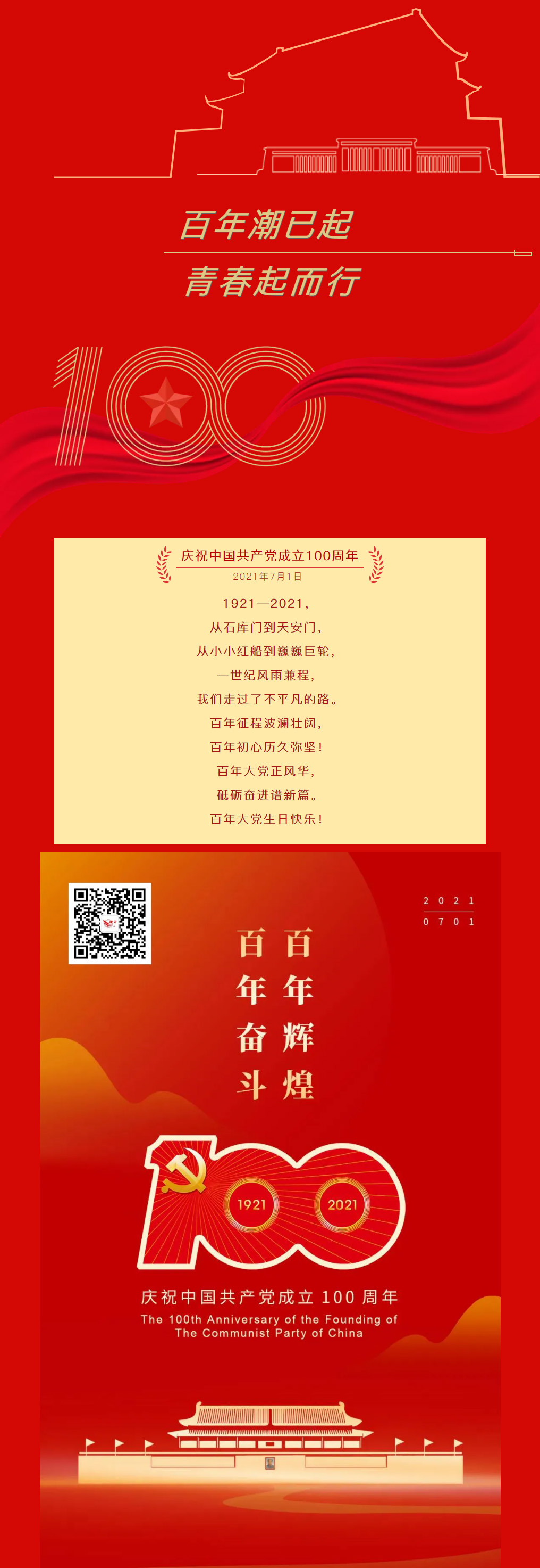 1921—2021,從石庫(kù)門到天安門,從小小紅船到巍巍巨輪,一世紀(jì)風(fēng)雨兼程,我們走過了不平凡的路。百年征程波瀾壯闊,百年初心歷久彌堅(jiān)!百年大黨正風(fēng)華,砥礪奮進(jìn)譜新篇。百年大黨生日快樂!