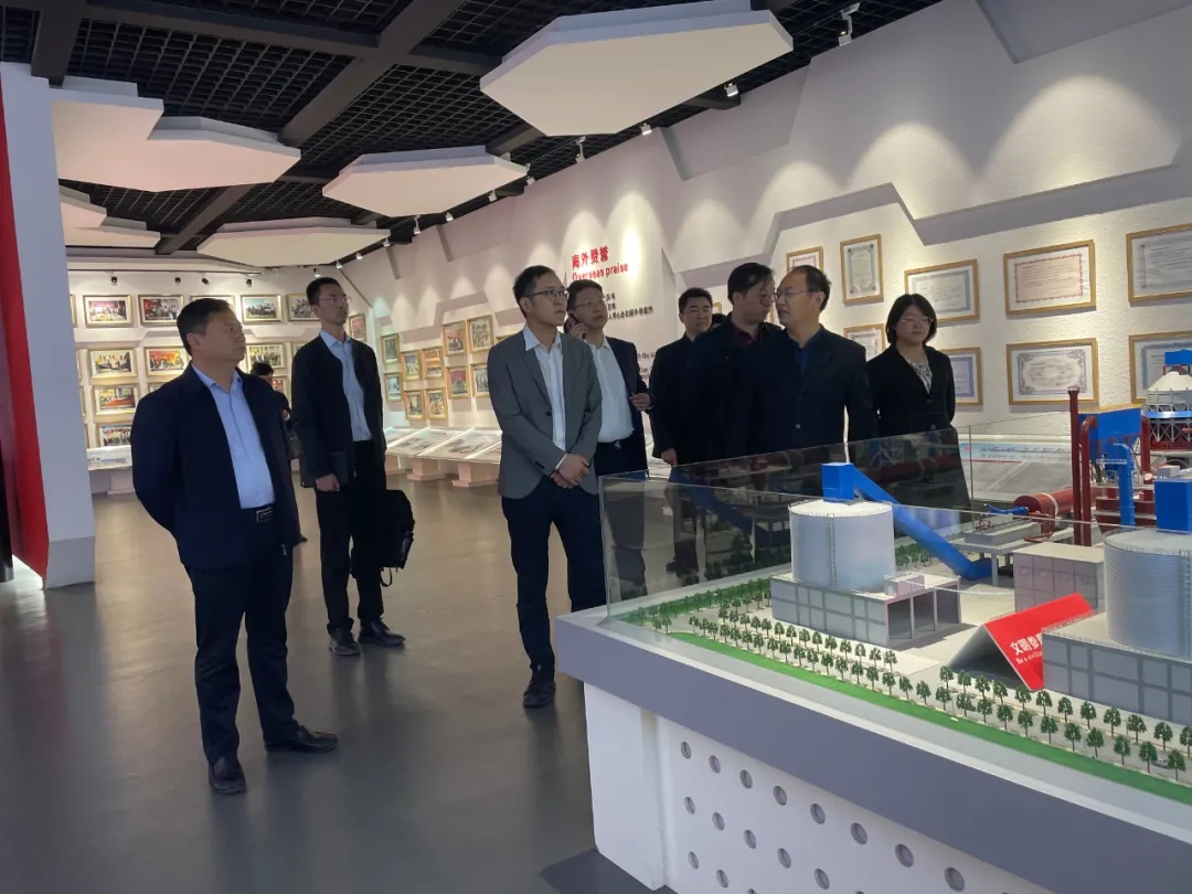 谷行楗一行先后參觀了鵬飛集團(tuán)科技展覽館和生產(chǎn)車間,參觀途中,雙方就回轉(zhuǎn)窯、輥壓機(jī)等生產(chǎn)線設(shè)備的種類、特點(diǎn)、制造工藝等進(jìn)行了學(xué)術(shù)交流。