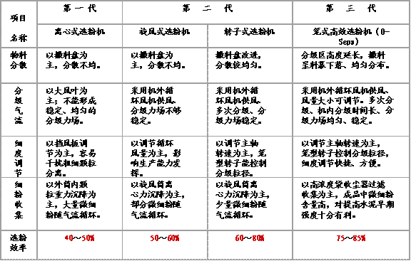 (一)三代選粉機的主要結(jié)構(gòu)性能比較