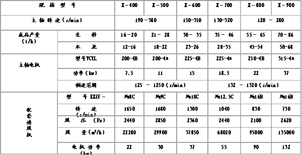 部分國產(chǎn)轉(zhuǎn)子選粉機的技術(shù)參數(shù)
