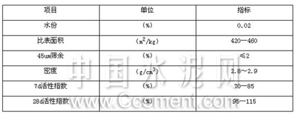 2/kg時,立磨臺時產(chǎn)量達(dá)52t/h,系統(tǒng)電耗為37.3kWh/t,制備的礦渣微粉性能見表8: