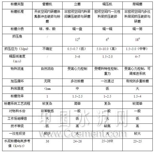 表1 管磨機(jī)與立磨、輥壓機(jī)、筒輥磨粉磨特性對比