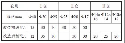 表2 改造前后磨內(nèi)研磨體級配