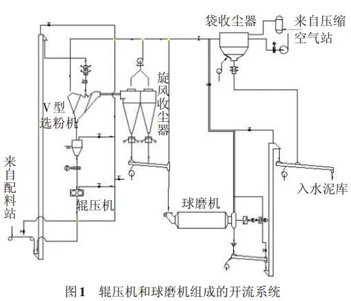 1 輥壓機(jī)和球磨機(jī)組成的開(kāi)流系統(tǒng)