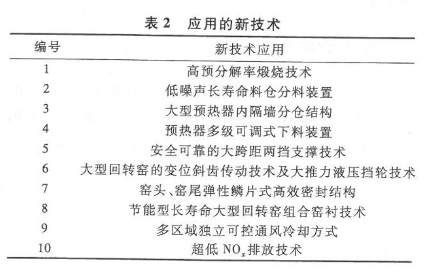 通過多年的自主研發(fā)和實(shí)踐經(jīng)驗(yàn)積累,我公司在本工程上應(yīng)用了大量的回轉(zhuǎn)窯新技術(shù),確?;剞D(zhuǎn)窯系統(tǒng)的節(jié)能、環(huán)保、高效。具體應(yīng)用的新技術(shù)列于表2。