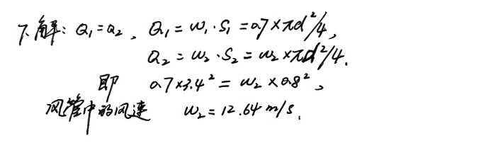 7、磨機(jī)有效直徑3.4m,測(cè)其風(fēng)速為0.7m/s,假設(shè)磨尾無漏風(fēng),磨尾風(fēng)管直徑為800mm,求風(fēng)管中風(fēng)速。